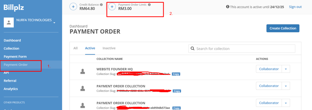 - Pergi ke menu Payment Order di Billplz